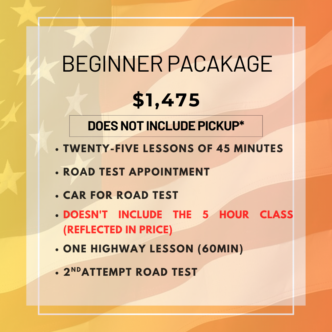 A pick-up option is available for purchase for $1,975. This price includes pick-up service, use of the car for the road test, the 5-hour class, and everything required for the road test.