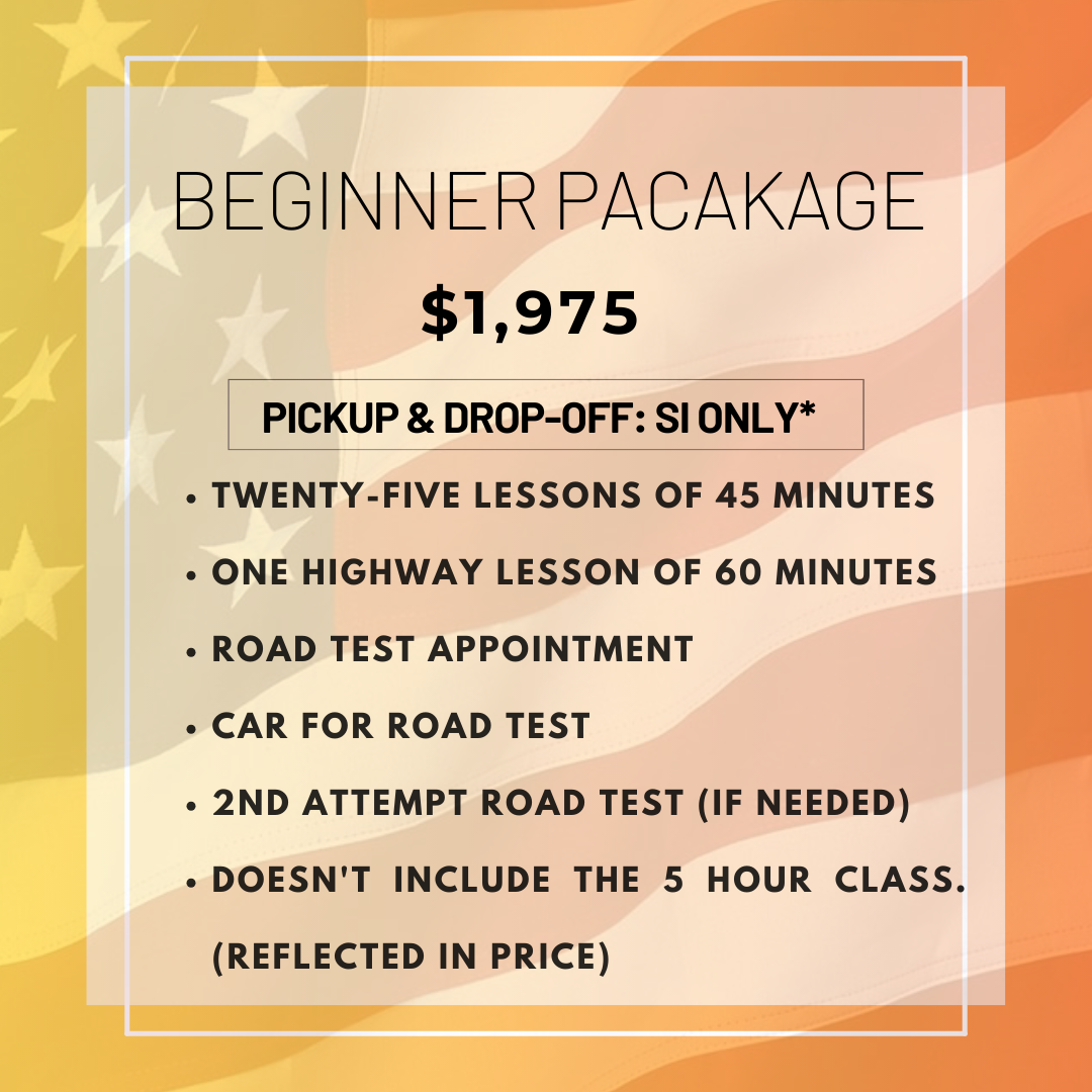 Note: When comparing prices with other driving schools on Staten Island, you’ll find the Pick-Up option to be extremely affordable. Many schools advertise “free pick-up” but do not include the road test vehicle. Once those services are added, their total cost is often higher.