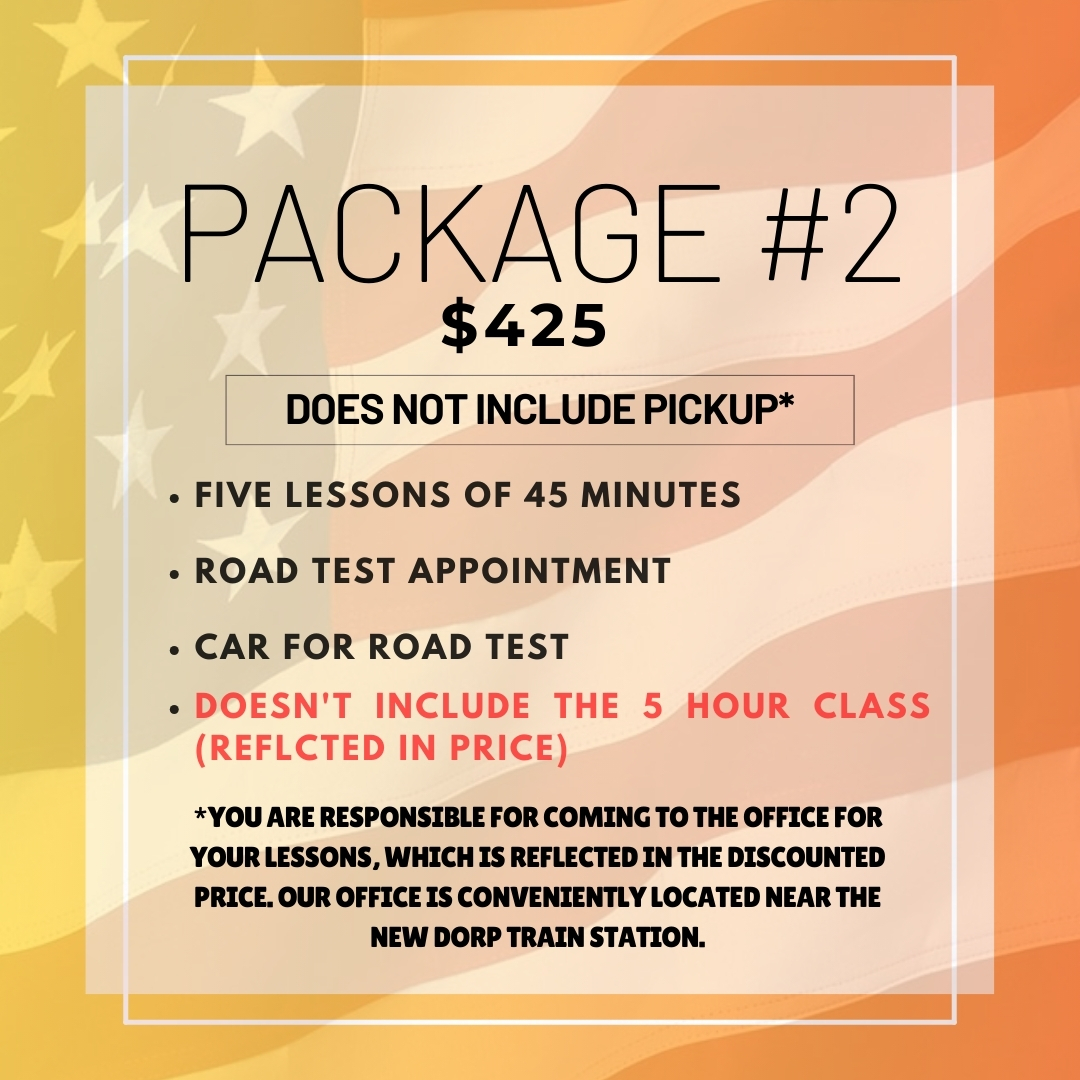 A pick-up option is available for purchase for $505. This price includes pick-up service, use of the car for the road test, the 5-hour class, and everything required for the road test.